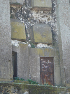 It appears as though the concrete squares, on the sea defence wall, are blocking what were once windows? I can't see whatother purpose these concrete extrusions to the facade serve? The exterior walls of the castle are constructed entirely of flint.